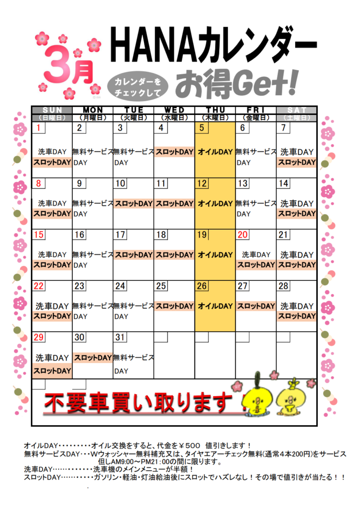 HANAカレンダーをチェックして今月もお得に当店をご利用ください(⋈◍>◡<◍)。✧♡