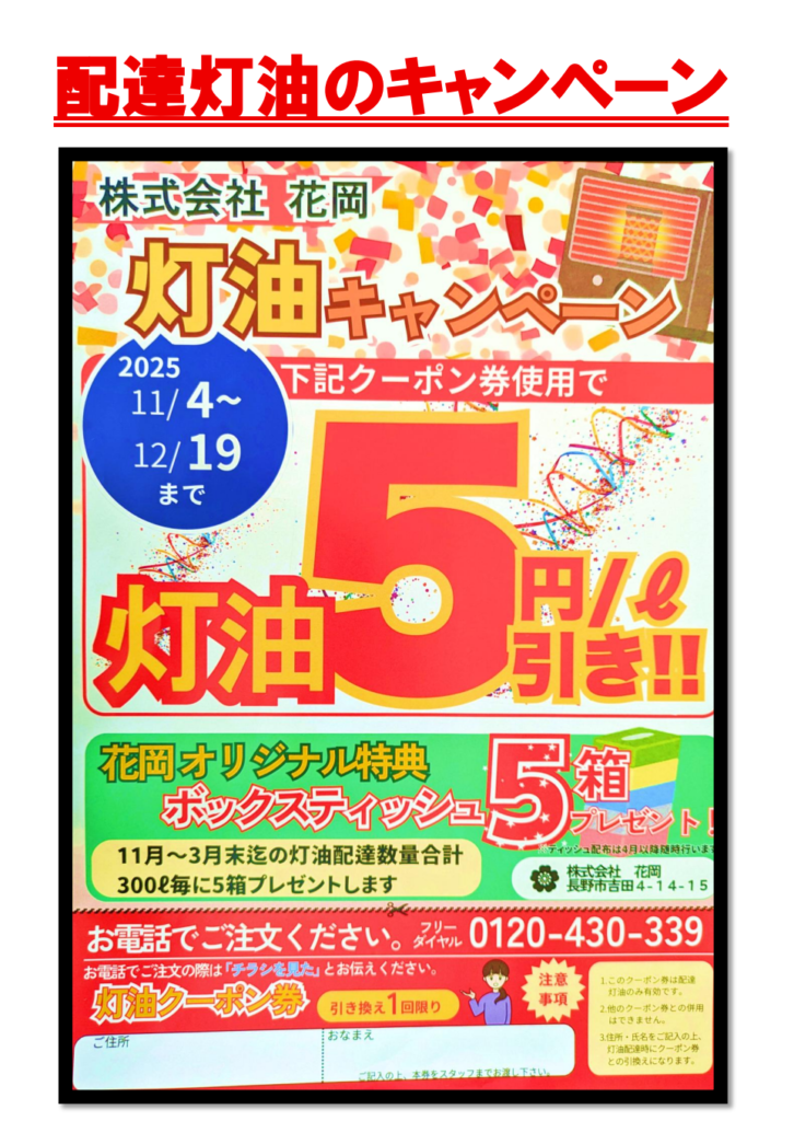 11/4~12/19まで本社での配達灯油キャンペーンが始まります⛄🔥