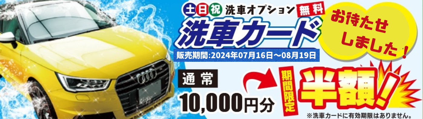 8月19日(月)まで10000円分の洗車カードを半額で販売してます💳